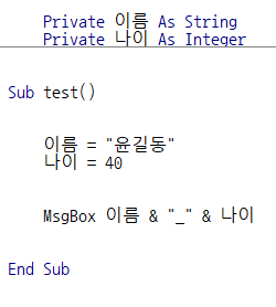 잘 작동이 된다. Public을 자주 쓰진 않고, Private는 모듈 내에 여러 가지 프로시저가 들어갈 때