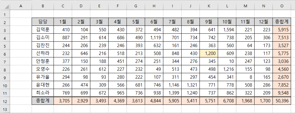 코드를 설명하면, Cells(Row, Column)을 사용하여, 첫 번째 For문에 Column을 3부터 14까지로