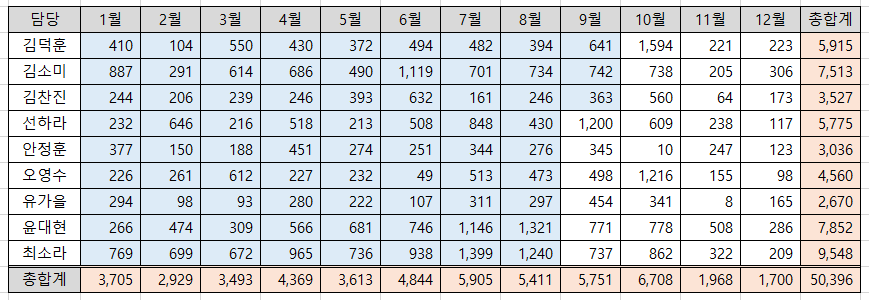 여기서 우리는 1월부터 검색을 시작해야 하니, 이중 For문 중, Column의 For문을 미리 쓰고 이후에 Row의 For문을 써줘야 Row가 먼저 검색되고 그 후에 Column이 검색되게 할 수 있다.