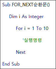 [엑셀 VBA] FOR~NEXT문(순환문) 사용법