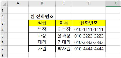 위의 [팀 전화번호]를 UserForm의 ListBox에 채워넣을 건데, 순서는 다음과 같다