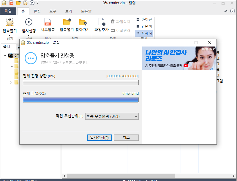 - 그냥 내기본 폴더에 압출을 풀어주자, 대부분 사용자명 밑에 기본폴더가 기본 지정되어 있음.