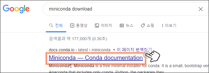 "아나콘다"의 미니 버전으로 초심자에겐 충분하다. 구글에 "miniconda download"를 쳐주면 된다.