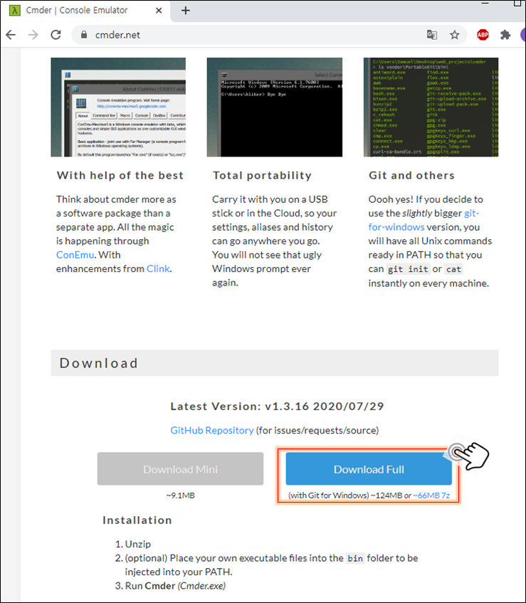 - 구글에 Cmder를 검색