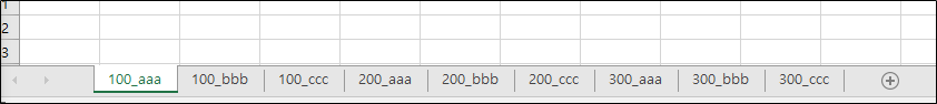 일단 위와 같이 이름의 앞자리가 100,200,300으로 된 총 9개의 Sheet가 있는데요. 지금은 뭐