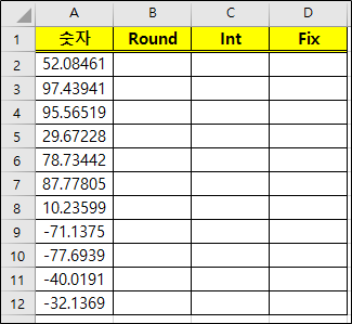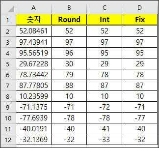 [엑셀 VBA] 정수 반올림 Round / Int / Fix