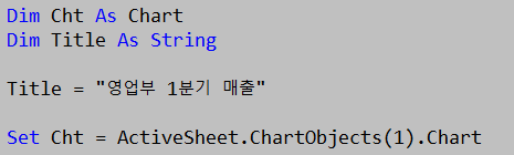 먼저 현재 Chart1의 변수인 Cht를 첫 번째 With문 두 번째는 차트 제목의