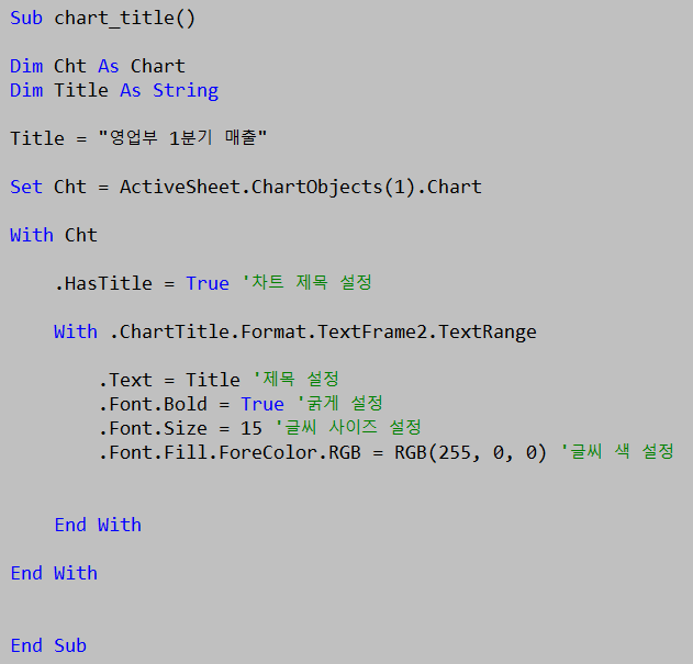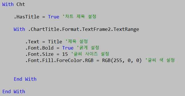 [엑셀 VBA] 차트 제목 설정(제목, Font, Size, Color, Bold)