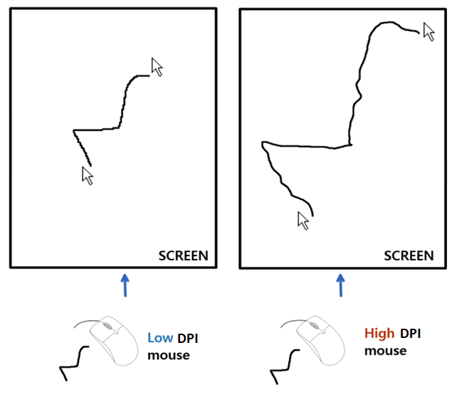 쉽게 말하면 DPI가 높으면 '마우스를 조금만 움직여도 커서가 휙휙