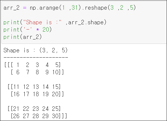 이번엔 3차원으로 배열을 만들어보자 (z=3, y=2, x=5)의 3차원 배열을 만들었다
