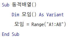그럴 때는 동적 배열 변수를 반드시 Variant로 선언해야 한다.