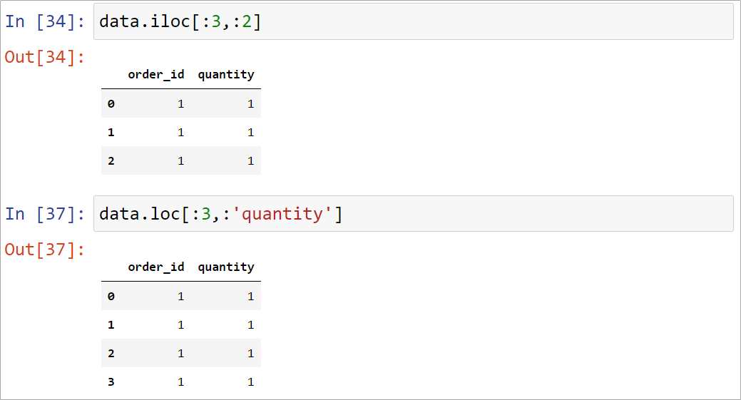 먼저 iloc을 보면 index를 '<3' 까지 지정함으로써 index가 0~2인 DataFrame이 추출된 것을 볼 수 있다.