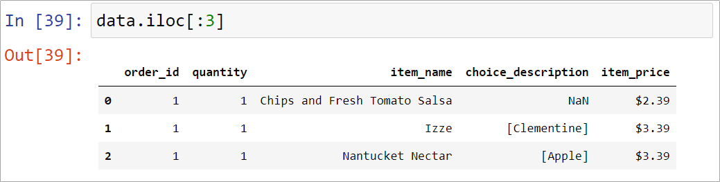 먼저 iloc을 보면 index를 '<3' 까지 지정함으로써 index가 0~2인 DataFrame이 추출된 것을 볼 수 있다.
