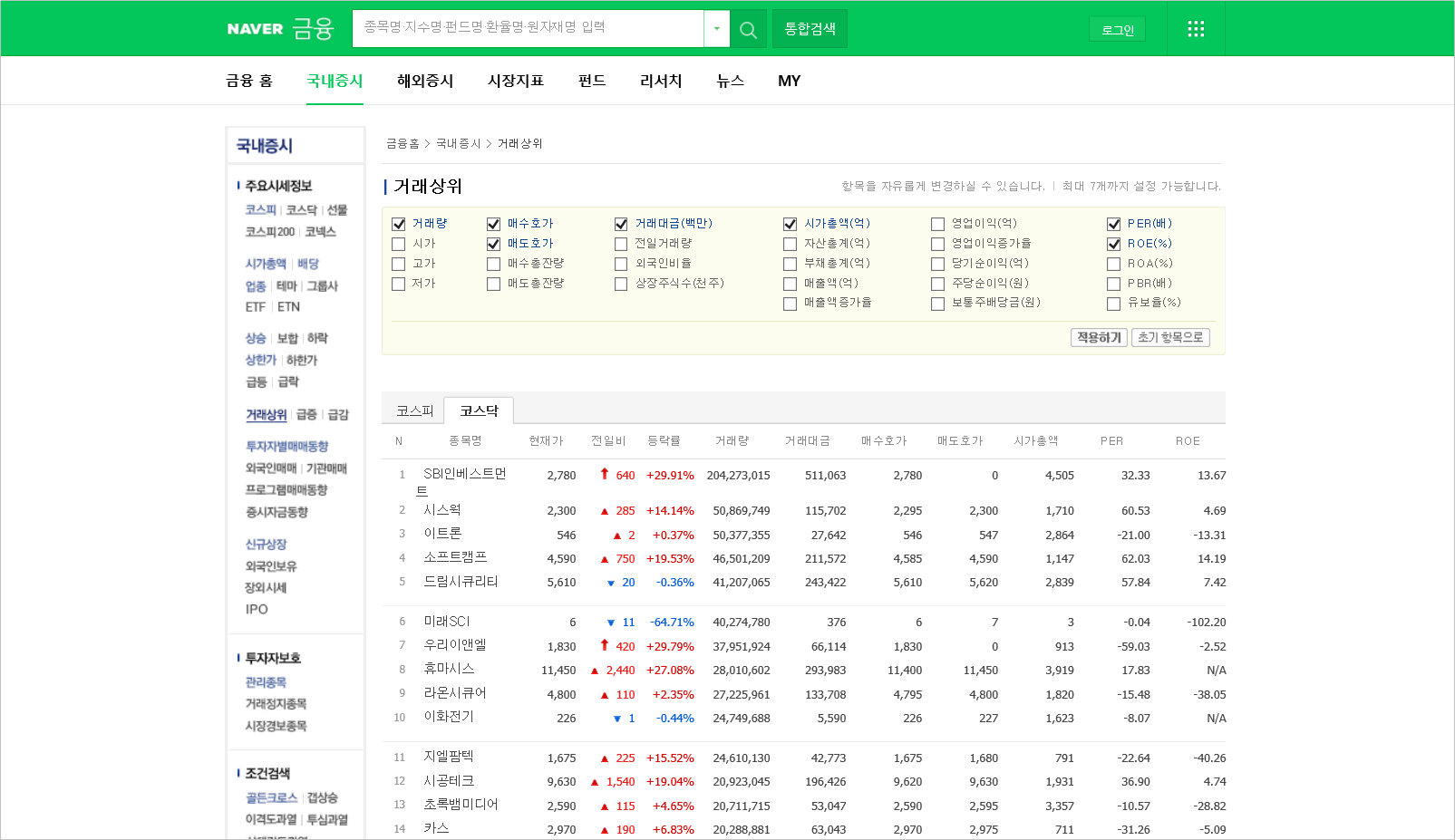 finance.naver.com/sise/sise_quant.nhn?sosok=1