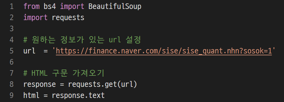 requests.get을 통해서 HTML 구문을 가져올 거다.