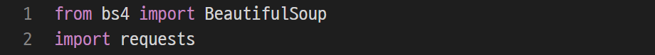 1. 웹크롤링에 필요한 BeautifulSoup, requests import 하기.